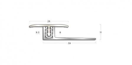 SFBT29/AFT398 is a twin top, two-part flooring transition profile. It provides a safe transition between floorcoverings of 8mm thickness such as carpet, carpet tile, ceramics, wood or wood laminate.
